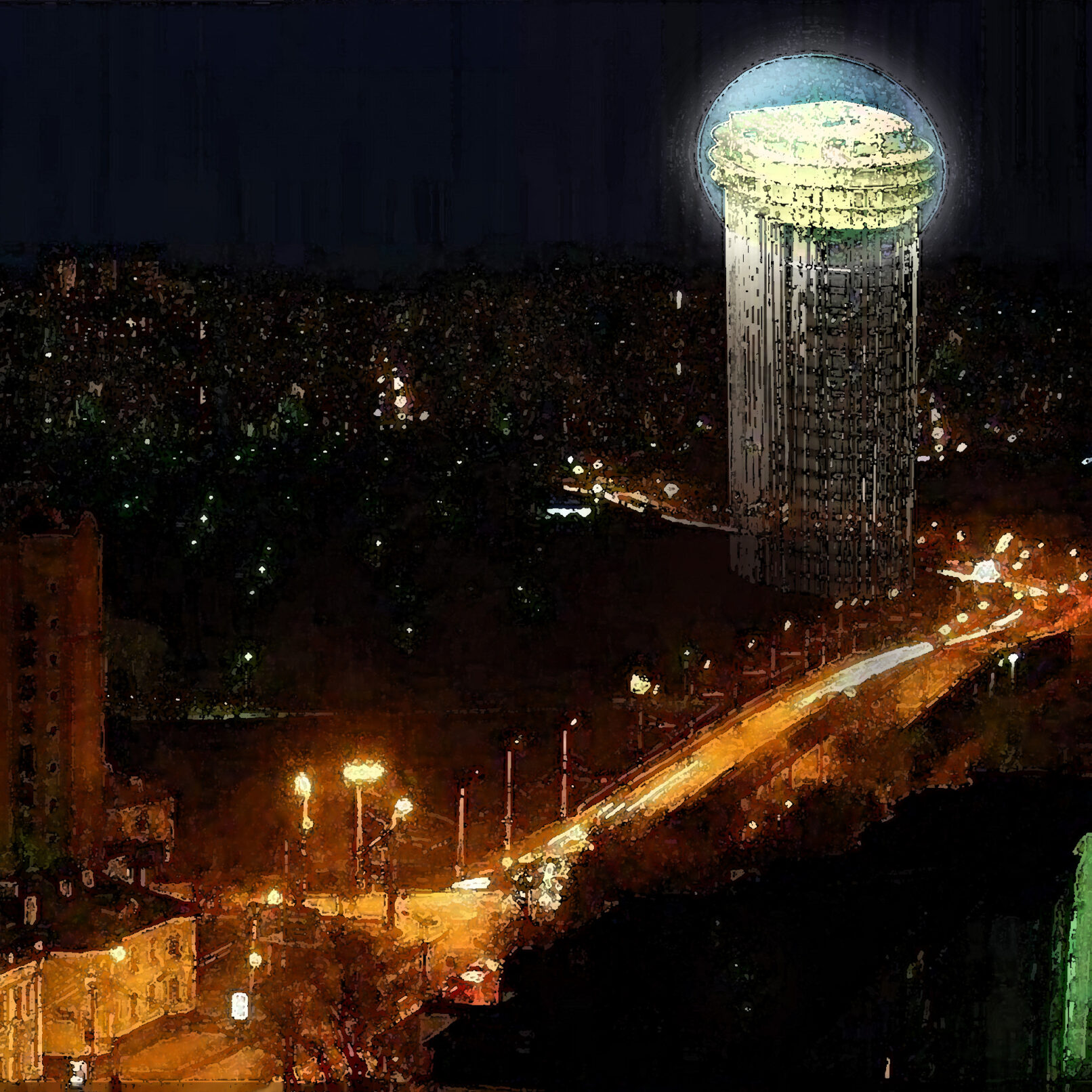 The building is topped by an ellipsoidal sphere symbolizing an airship and combining several upper floors which contain the recreation and entertainment area.