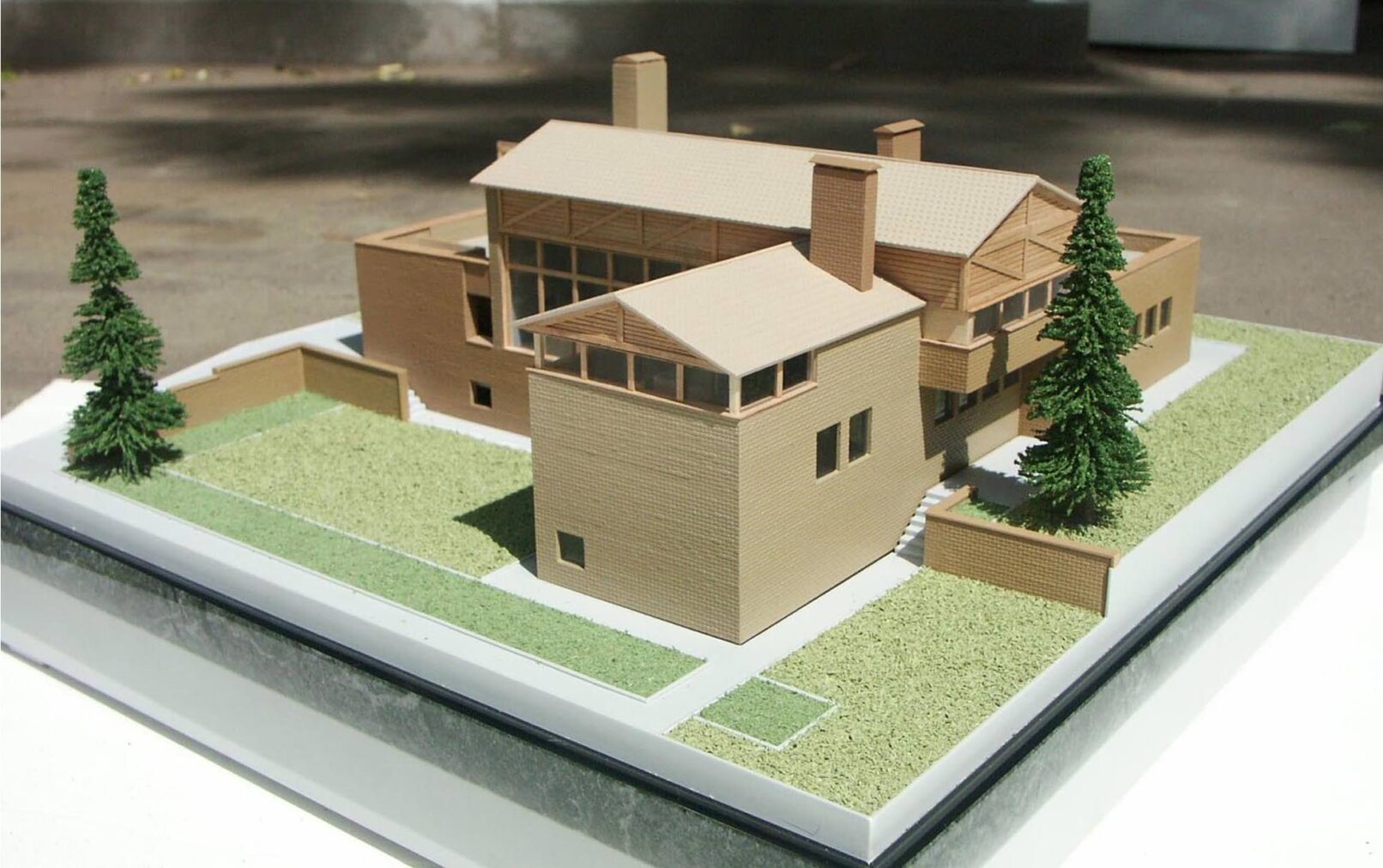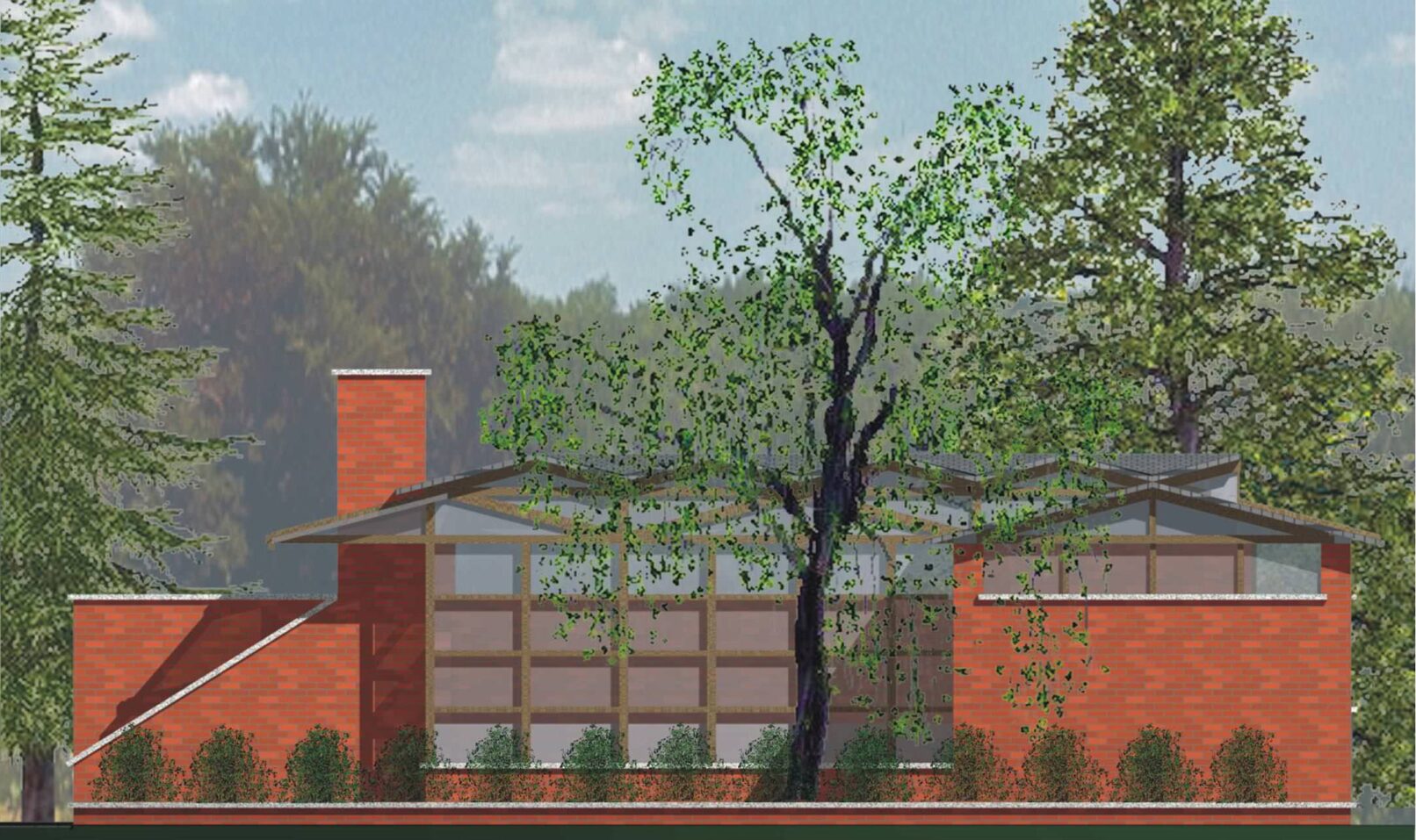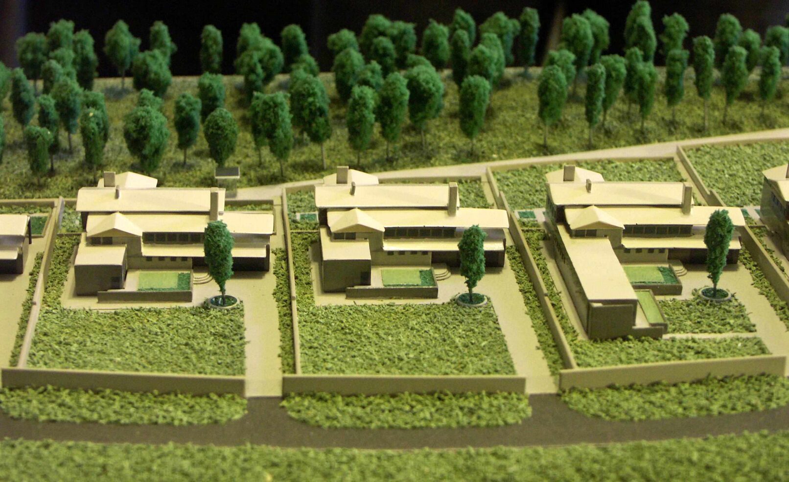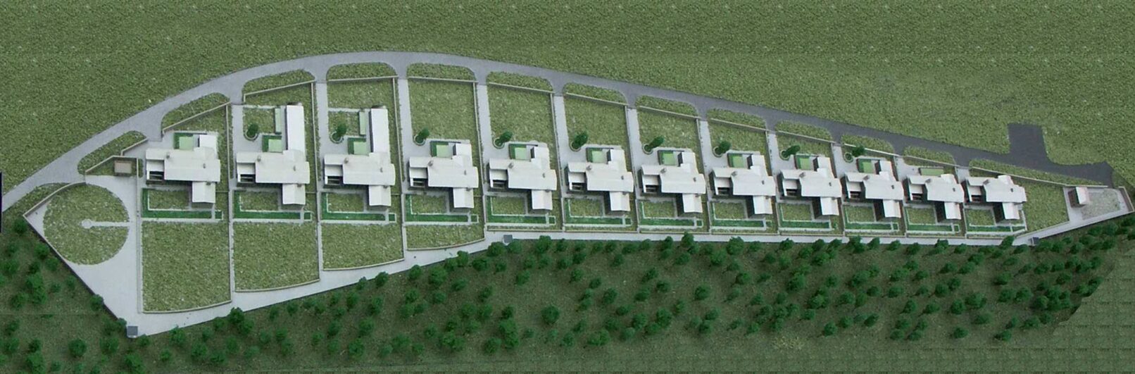 All houses are on one axis, like a fish skeleton, and have a repeating central part of the house. Depending on the size of each of the plots, a variety of extras are added to the central part of the house; conservatory, swimming pool, etc.
