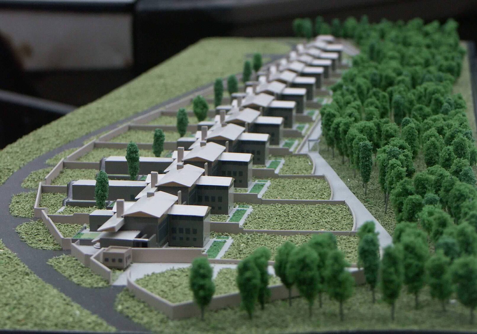 The composition of this mini-settlement, defined by an elongated and resembling the form of a giant fish, the site proposed for building.