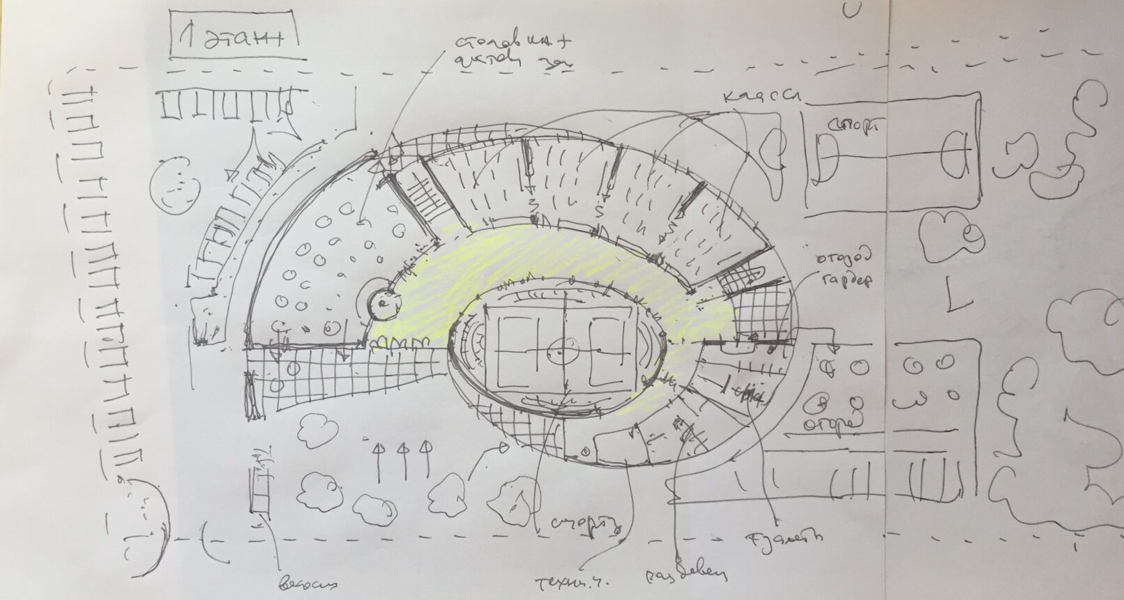 The school for which the project was designed is based on the principle of smooth and gradual immersion in the material developed by Italian Professor Zavaloni, “Pedagogy by the Snail”.