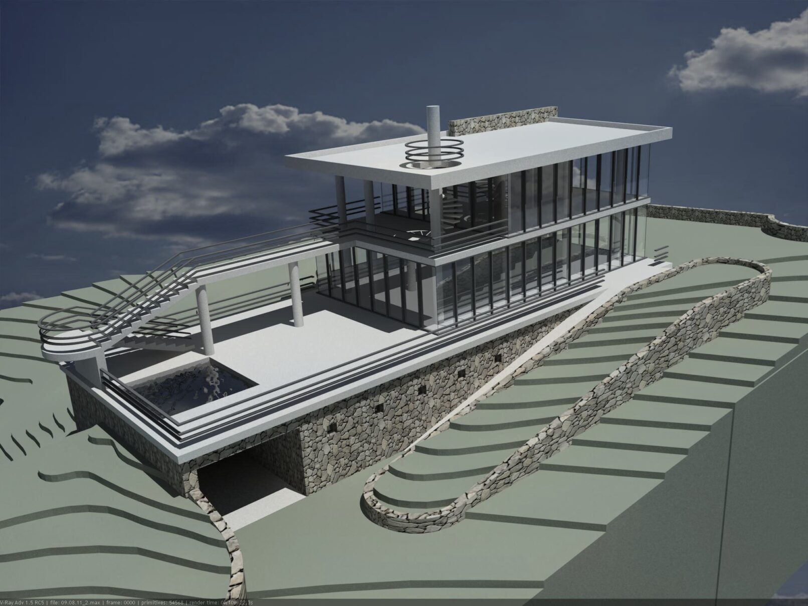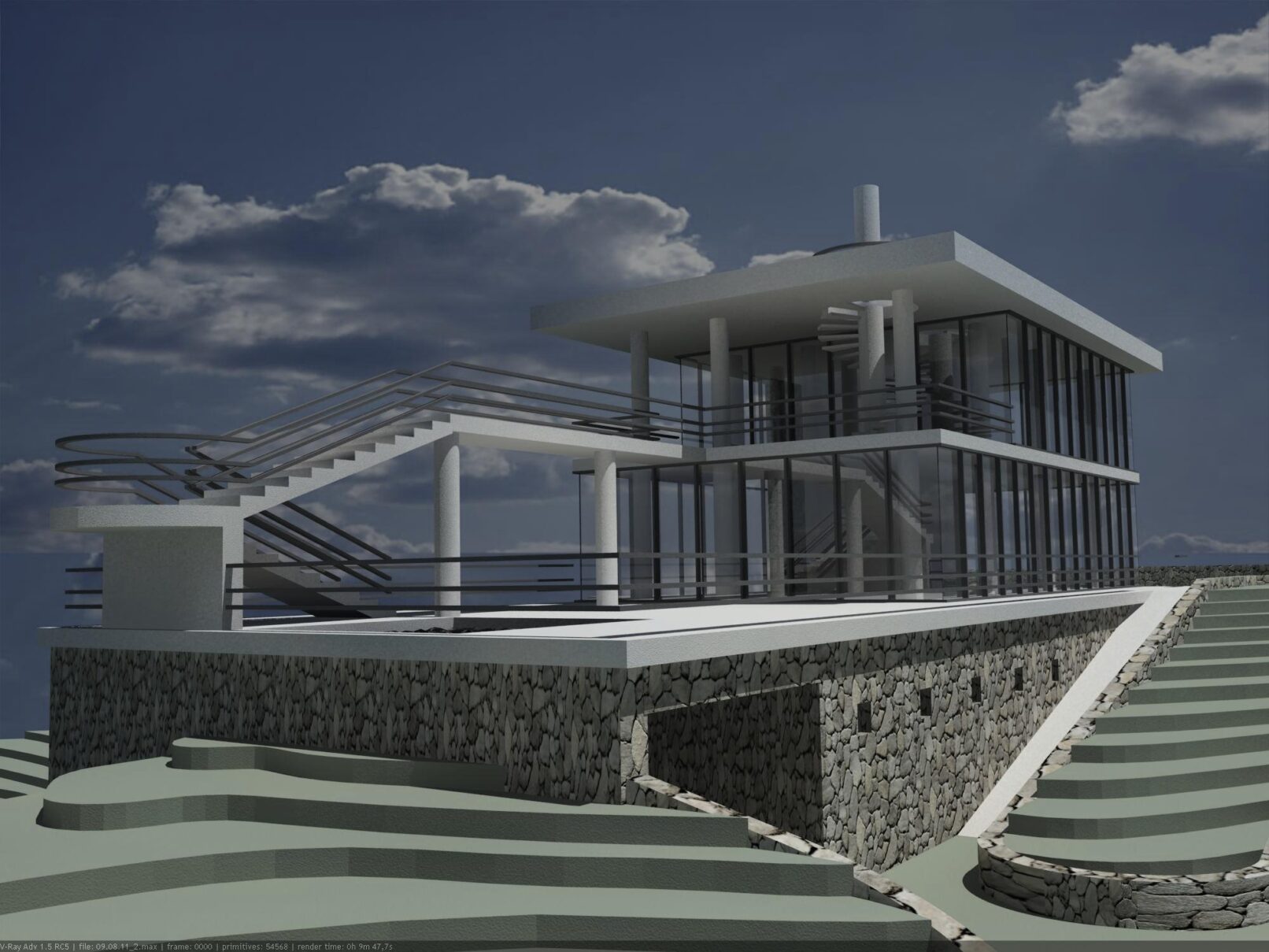 Only a part of one of the walls of the house, as well as the walls of the basement floor, is made of natural stone left over from the destroyed old house that was on this place earlier, and according to the author’s plan, it is a small reference to the past.