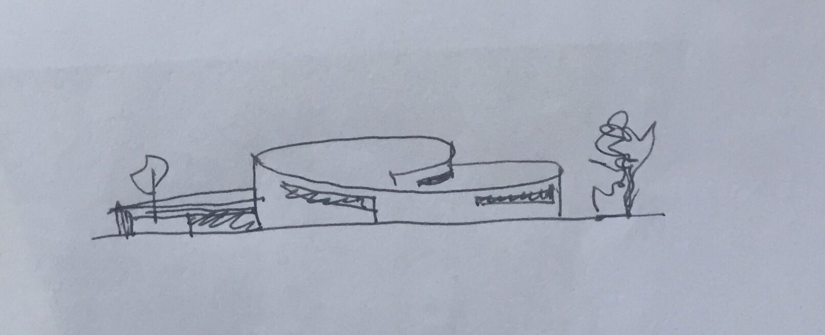 La forma ovale della pianta, invece, armonizza il disordine urbanistico che circonda il sito.